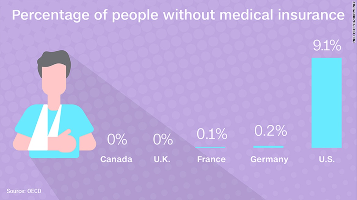 Findings from the Organization for Economic Cooperation and Development were utilized for these CNN infographics comparing US health care access and quality to other nations.